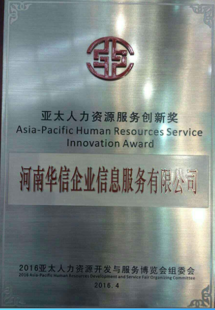 河南華信企業信息服務有限公司在此次大會上榮獲“亞太人力資源服務創新獎”,公司總經理張強榮獲“亞太人力資源服務創新人才獎”